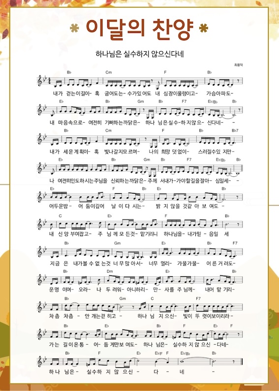 10월의 찬양 [하나님은 실수하지 않으신다네]