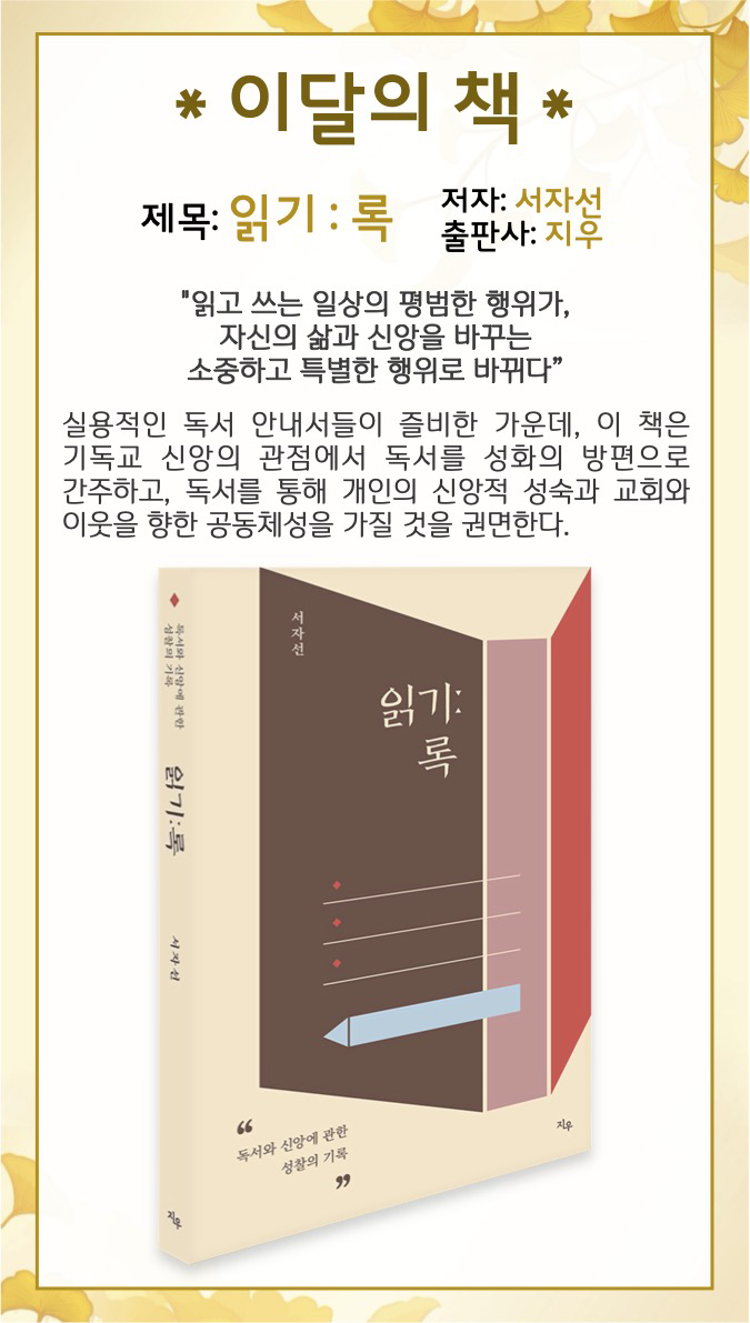 "읽고 쓰는 일상의 평범한 행위가, 자신의 삶과 신앙을 바꾸는 소중하고 특별한 행위로 바뀌다”
