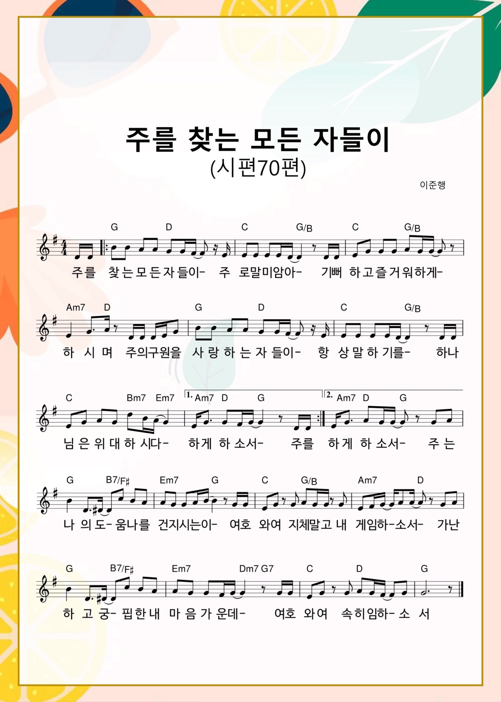 7월의 찬양 [주를 찾는 모든 자들이] (시편 70편)